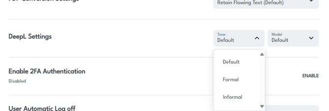 This article explains how to set a preferred tone for translations using the DeepL engine in your user profile.