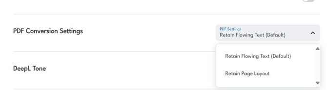 Pairaphrase offers two options for PDF file conversion before translation: Retain Flowing Text and Retain Page Layout. These settings control how your PDF content is extracted and structured for translation—similar to the options available in Adobe Acrobat Pro.